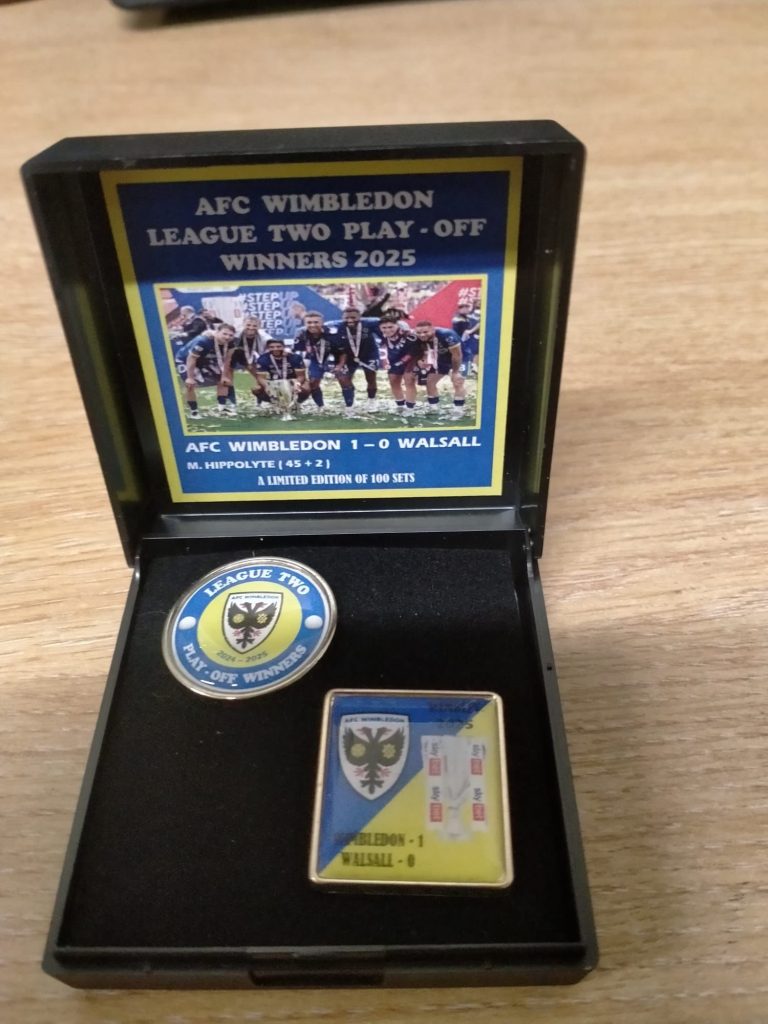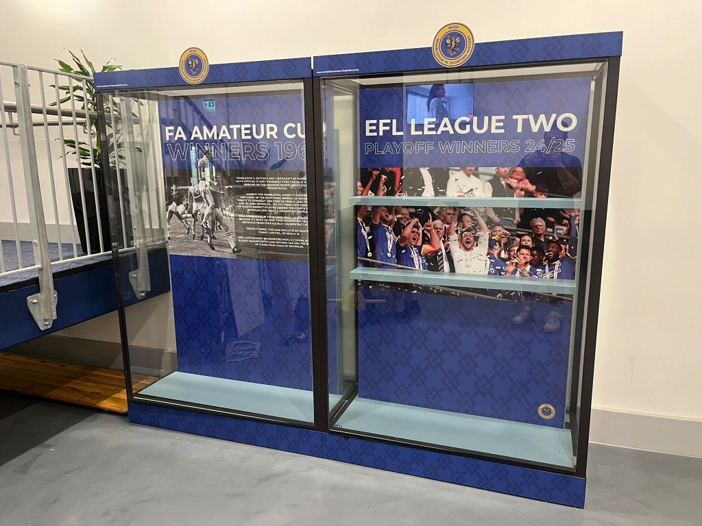Alongside the FA Trophy display is another from more recent times. The League Two Playoff success in May is also celebrated, and the exact trophy can be seen with some other unique pieces.