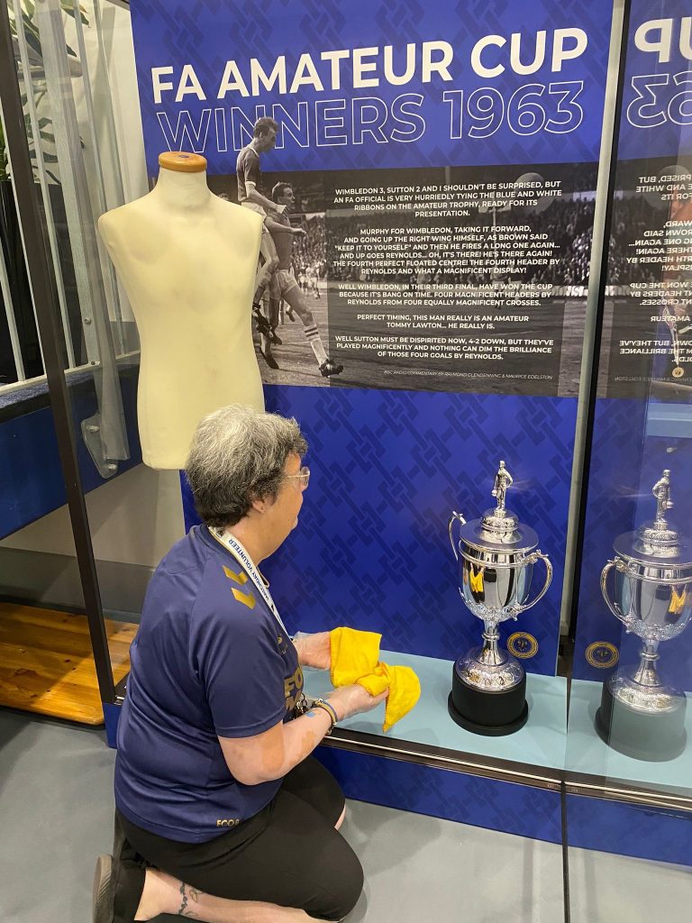 The Trophy is housed with Dave Willis’ full kit from the game, and as wonderful as that piece of history is, soon we hope to have the very shirt of the goal scorer himself, so keep a close eye on our social media and these pages for updates on that.