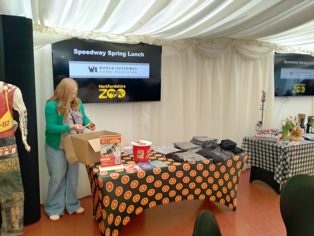 Last month as a precursor to the Speedway statue unveiling at Plough Lane this coming Saturday, our project manager of that event Jon Stevens (pictured below) was joined by WiSH Managing Director John Lynch at a special event hosted by the World Speedway Riders Association in the beautiful settings of Hertfordshire Zoo.
